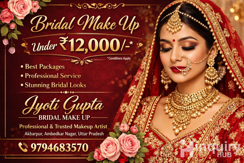 Jyoti Gupta is a professional and highly trusted makeup artist from Akbarpur, Ambedkar Nagar, Uttar Pradesh, known for creating breathtaking bridal makeup looks. With expert techniques and premium products, she delivers flawless, radiant, and long-lasting
