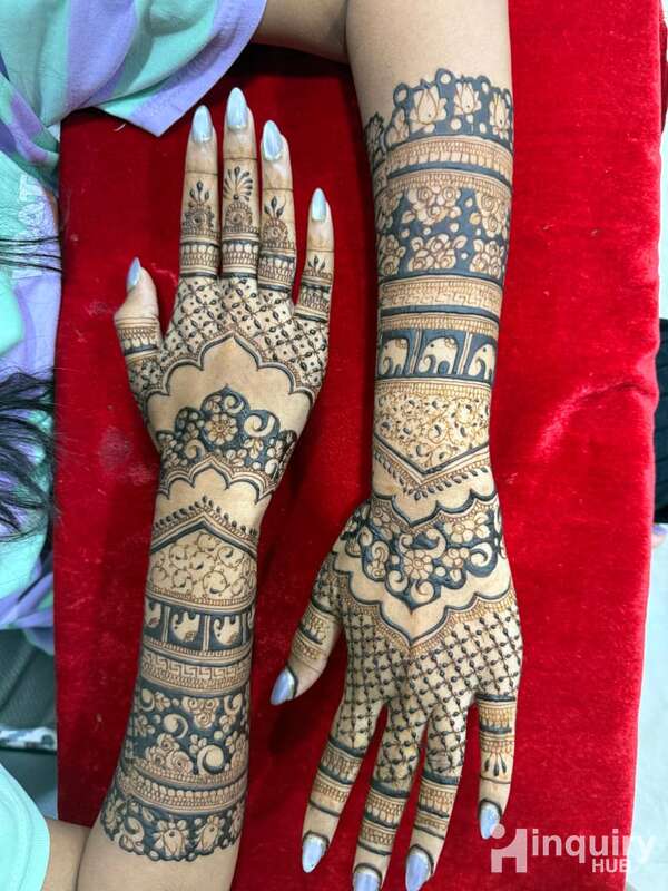 A passionate and experienced Mehndi Artist Namrata patel specializing in bridal, Arabic, traditional, and contemporary designs. Known for intricate detailing, clean finishing, and achieving rich, dark stain results.