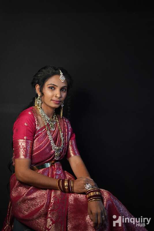 SUNITHA is a freelance makeup artist in hydrabad. She is highly professional and has immense knowledge about her work. For all her brides, she always suggests the best looks which are minimalistic yet glamorous enough to make them outshine everyone on their big day. SUNITHA is known for her versatility and fearlessly authentic makeup looks, so you can rest assured that you would get your job well done and look just the way you've imagined on your big day. Be sure to give her the honor of giving you the magical makeover you need for your special day if you have a good feeling about her! A bridal makeup brand that has committed to Transforming women to their aesthetic best on their special day, that's SUNITHA for you. She is a professional makeup artist and is recognized for creating look that will make you shine on every occasion. For her, every bride has to look perfect from head to toe, she works hard in giving you an event that is exceptional and exemplary.